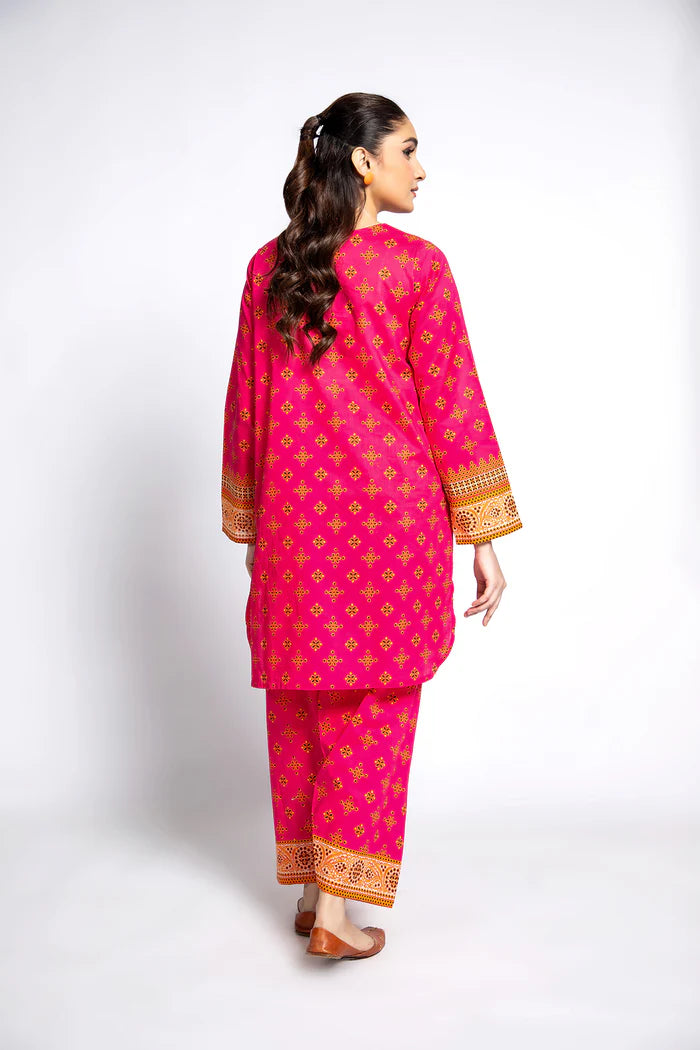 Elevate your wardrobe with this expertly crafted two-piece printed lawn set, featuring a vibrant pink lawn shirt paired with a printed cambric trouser. The lightweight, breathable fabric ensures comfort in warm weather, while the intricate prints add a touch of elegance and uniqueness. Designed for those who appreciate quality and style, this unstitched set allows you to customize the fit to your preference, making it a versatile addition to your collection. Perfect for casual outings or festive occasions, this ensemble combines traditional charm with contemporary flair..