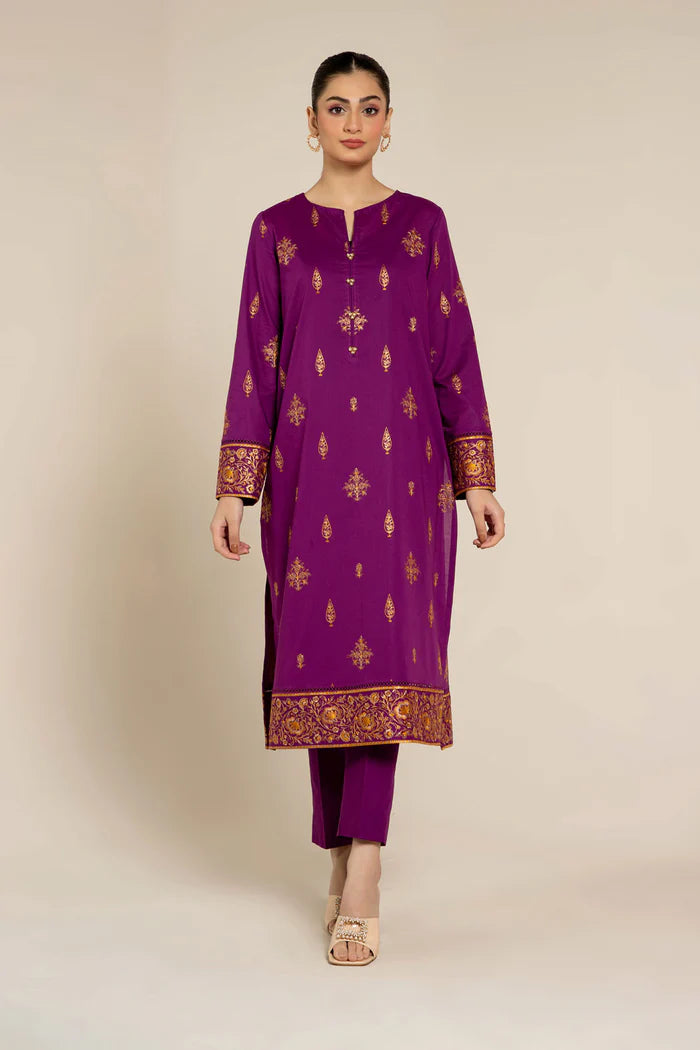 Designed to elevate your everyday look with a touch of elegance, this beautiful plum color shirt features complimenting colors embroidery on premium lawn material. And with the included matching cambric trouser, you'll be effortlessly stylish and chic at any occasion.