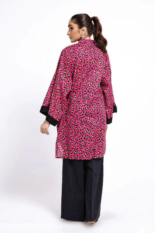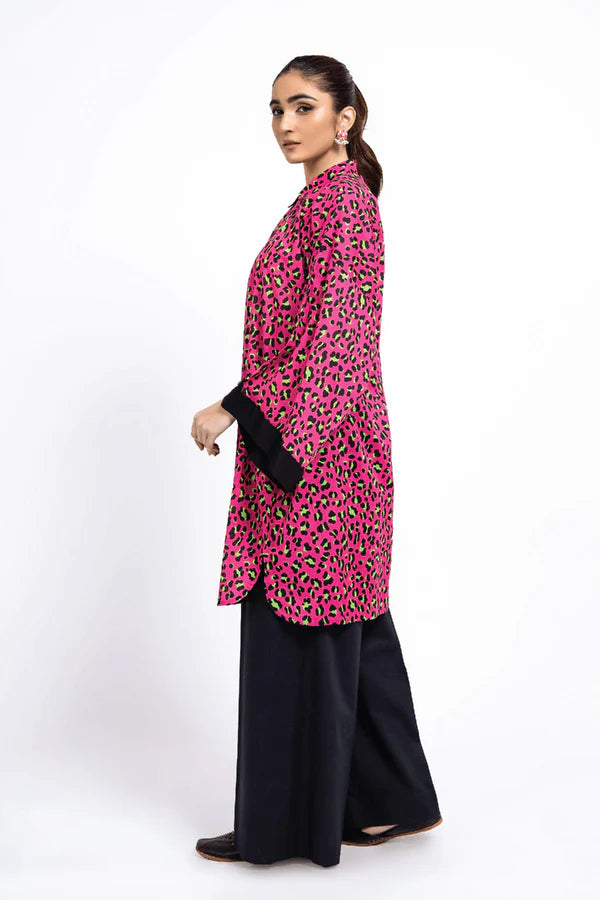 Printed 1 pc with drop shoulder collared shirt , boxy sleeve and round hemline are the features for this vibrant summary print.