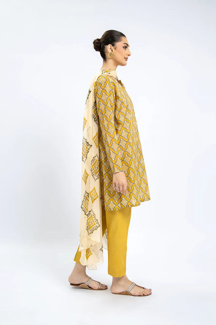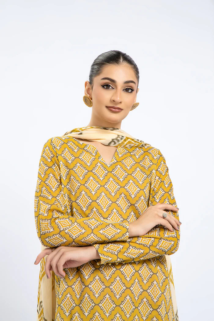 Elevate your wardrobe with our expertly crafted 2-piece printed lawn set in a vibrant mustard hue. This unstitched ensemble includes a breathable, high-quality lawn shirt adorned with intricate prints, perfectly complemented by a lightweight chiffon dupatta that adds a touch of elegance and fluidity. Designed for comfort and style, this combination allows you to customize your fit while enjoying the luxurious feel of premium fabrics. Ideal for warm weather, this set offers both sophistication and versatility for your seasonal wardrobe.